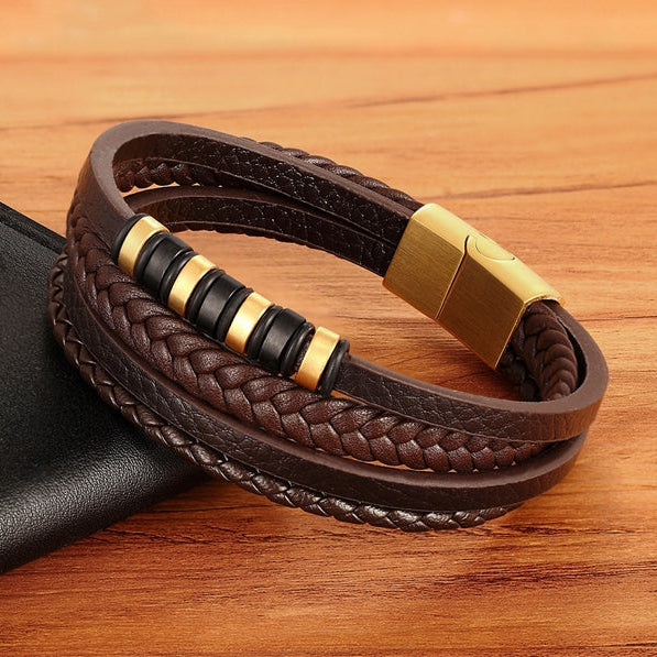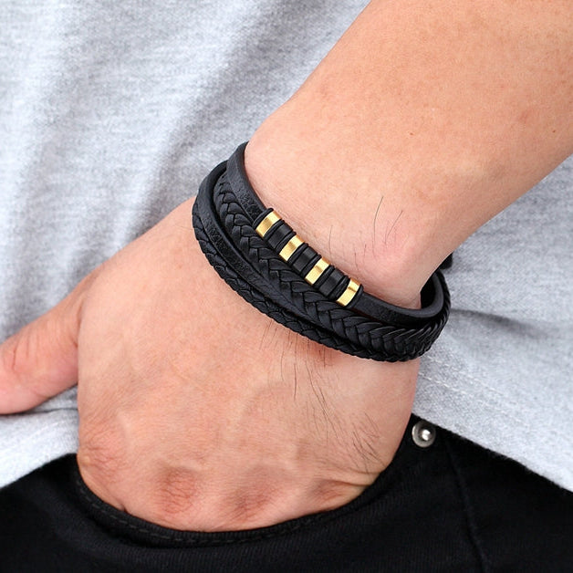 Name: Multi-layer Stainless Steel Leather Bracelet For Men Women